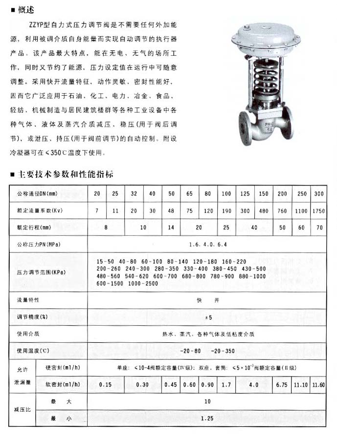 ZZYP型自力式壓力調節閥是不需要任何外加能源,利用被調介質自身能量而實現自動調節的執行器產品,該產品***大特點,能在無電、無氣的場所工作,同時又節約了能源,壓力設定值在運行中可隨意調整。采用快開流量特征,動作靈敏,密封性能好,因面它廣泛應用于石油、化工、電力、冶金、食品、輕紡、機械制造與居民建筑樓群等各種工業設備中各種氣體、液體及蒸汽介質減壓、穩壓(用于閥后調節)、或泄壓、持壓(用于閥前調節)的自動控制、附設冷凝器可在<350C溫度下使用。